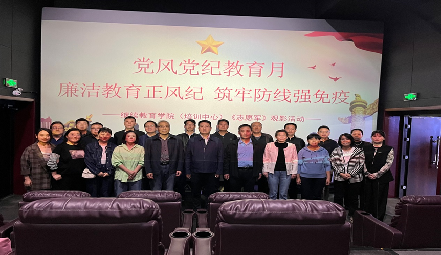 10月11日,继续教育学院(培训中心)组织全体教职工观看电影《志愿军:雄兵出击》,开展“忆初心 强党性” 党风党纪主题教育活动。通过教育活动进一步增强全院教职工爱党爱国情怀、政治责任感和历史使命感,从银幕中感悟精神,从故事中汲取力量。