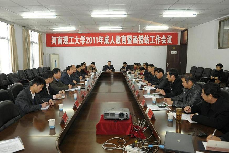 ,河南理工大学2011年成人教育暨函授站工作会议在我校北校区万方科技学院会议室举行。河南理工大学副校长王裕清出席会议,成人教育学院领导、学校招生办领导以及来自省内外12个函授站的代表共40余人参加了会议。会议由成人教育学院党总支书记段喜征主持。
