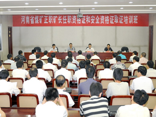8月9日上午,河南省正职矿长任职资格证和安全资格证取证培训班开班典礼在东方宾馆举行。河南省安全生产监管局煤监办副主任李震寰、副校长景国勋及学校安全技术培训学院主要负责同志参加了开班典礼。开班典礼由安全技术培训学院院长李德海教授主持。