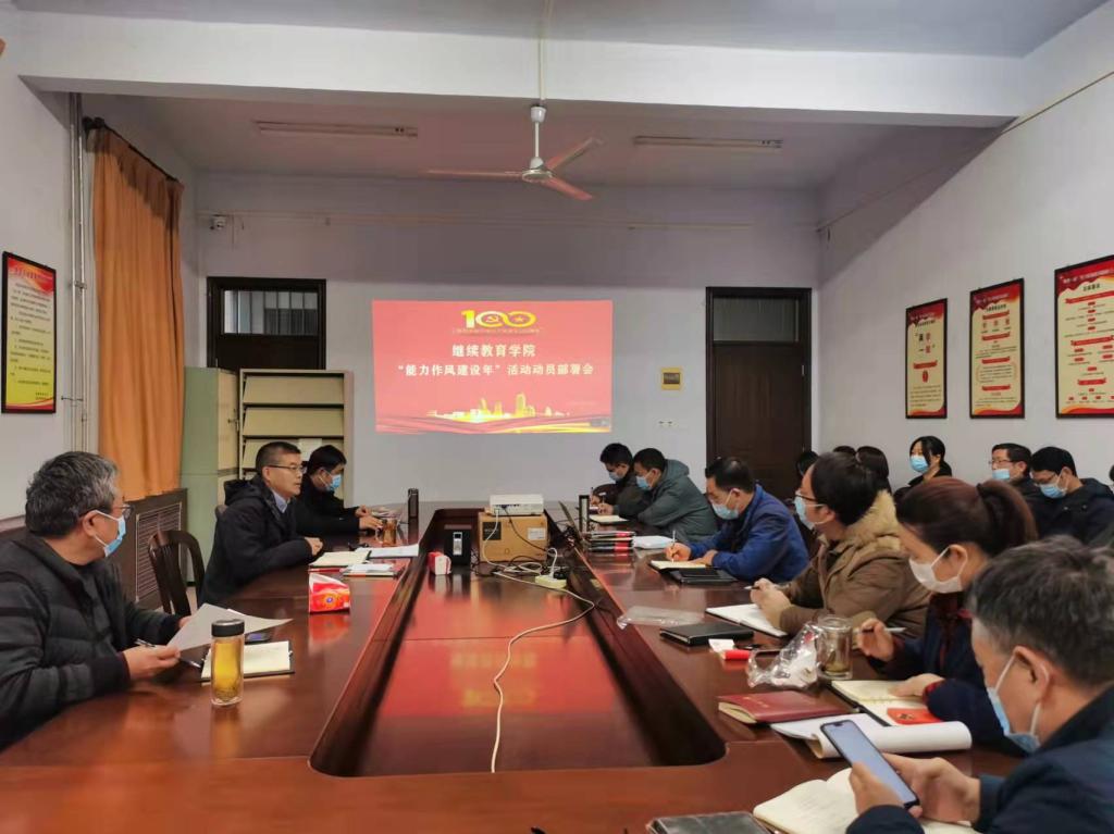 为推进“能力作风建设年”活动扎实有效的开展,1月6日上午,继续教育学院(安全技术培训中心)召开“能力作风建设年”动员部署会,全体教职员工参加会议。会议由党总支书记史君锋主持。