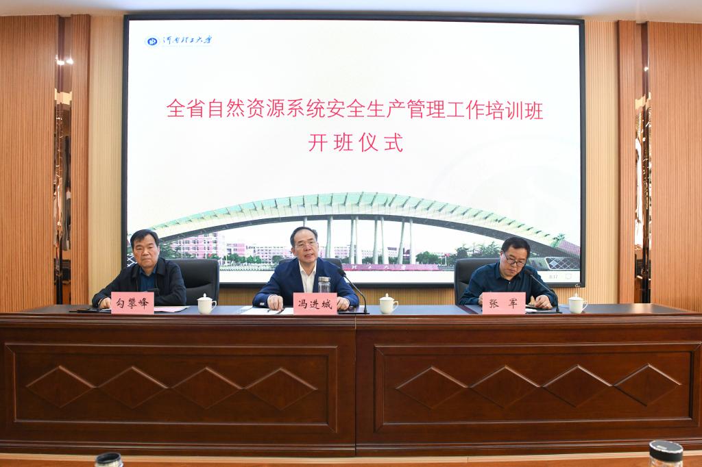 为深入学习贯彻党的二十大精神和习近平总书记关于安全生产工作的重要指示精神,认真落实省委、省政府关于安全生产工作的决策部署,有效提升全省自然资源系统安全管理工作水平,4月19日,全省自然资源系统安全生产管理工作培训班在我校正式开班。省自然资源厅二级巡视员冯进城,河南理工大学继续教育学院院长、安全技术培训中心主任勾攀峰等领导出席开班仪式。