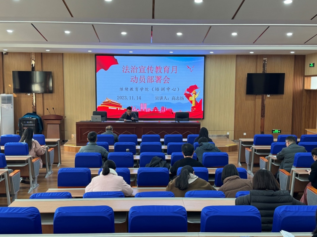 根据学校《关于开展法治宣传教育月活动的通知》安排,为深入学习贯彻习近平法治思想,切实为“八五”普法开好局、起好步。11月14日下午,继续教育学院(培训中心)召开法治宣传教育月动员部署会,全体教职员工参加会议。会议由党总支书记高志扬主持。