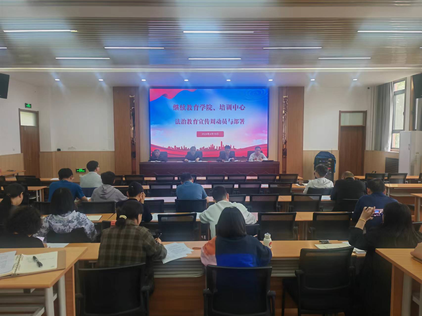 为深入贯彻落实全国全省教育系统“八五”普法规划,4月16日下午,继续教育学院、培训中心在303会议室开展法治教育宣传周活动,全体教职员工参加,会议由党总支书记高志扬主持。
