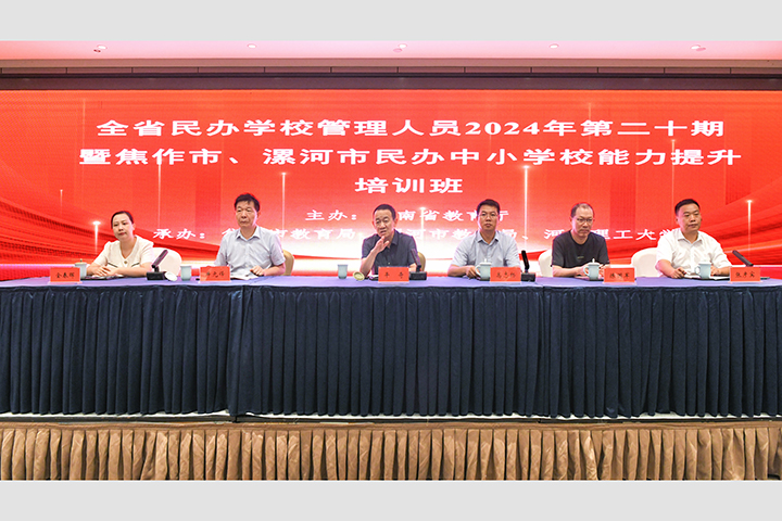 为全面贯彻党的教育方针,按照《河南省民办学校管理人员培训规划》和年度工作安排,8月6日上午,由河南省教育厅主办,河南理工大学和焦作市教育局、漯河市教育局联合承办的全省民办学校管理人员2024年第二十期暨焦作市、漯河市民办中小学校能力提升培训班在我校开班。