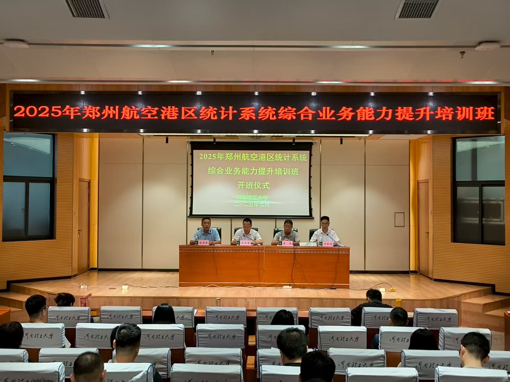 7月20日-25日,2025年度郑州航空港区统计系统综合业务能力提升培训班开班仪式在我校举行。培训班采取“理论+实践”“专业+素养”“校内+校外”相结合的方式,邀请高校学者和实务专家联合授课。