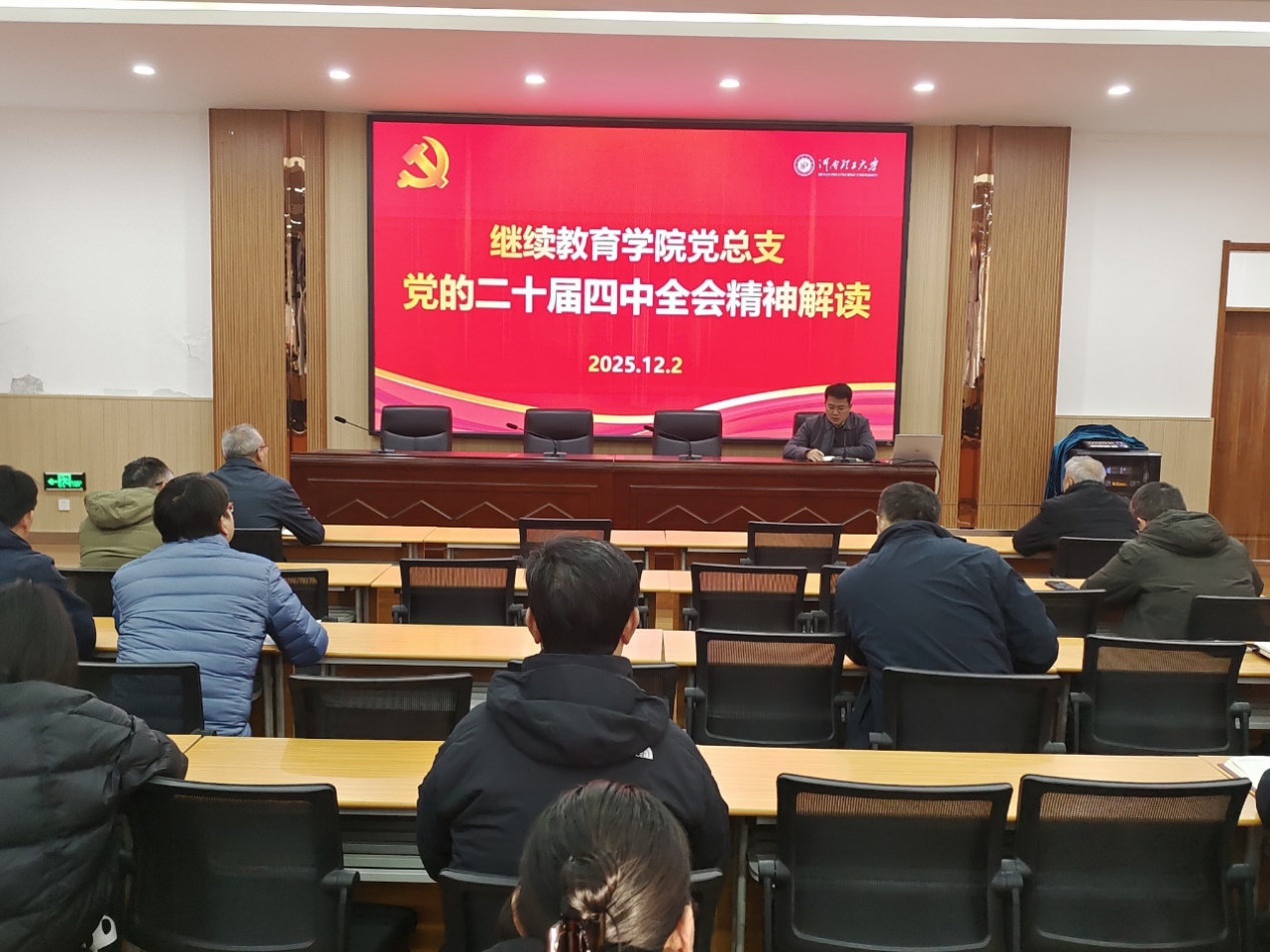 12月2日下午,继续教育学院在学院3楼会议室举办学习贯彻党的二十届四中全会精神宣讲报告会,学院党总支书记高志扬作宣讲报告,全体教职工参加。