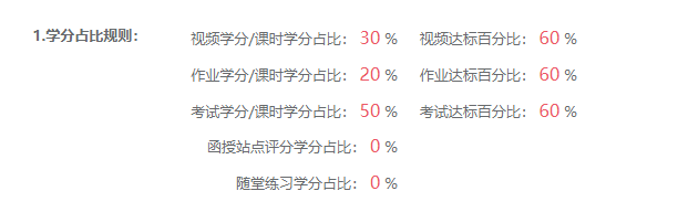 (1)线上学习、线上考试方式的课程成绩构成为:
