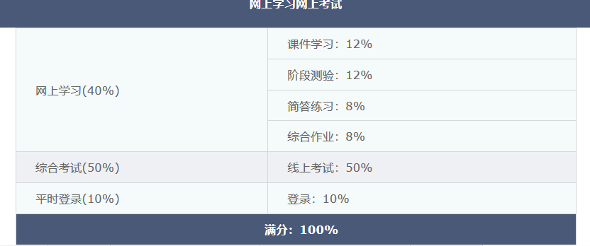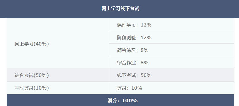 (2)线上学习、线下考试方式的课程成绩构成为: