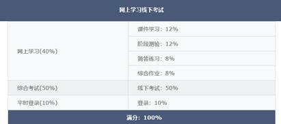 (2)线上学习、线下考试方式的课程成绩构成为: